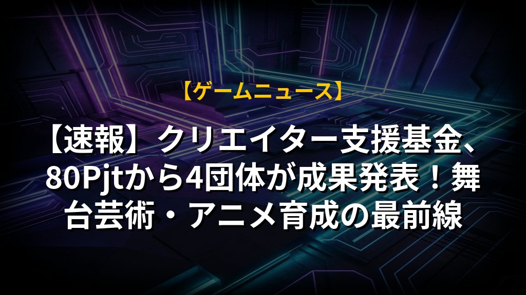 【速報】クリエイター支援基金、80Pjtから4団体が成果発表!舞台芸術・アニメ育成の最前線の注目ポイントまとめ