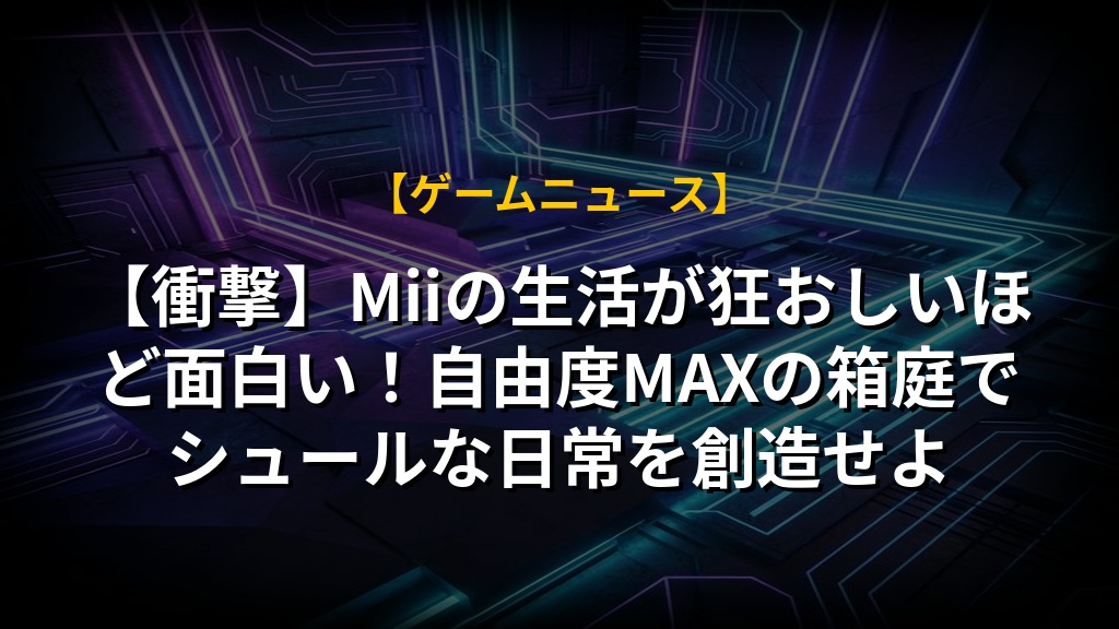 Miiを住まわせる箱庭ゲームの最新情報が届きました!一見シンプルですが、Miiの生活に積極的に介入できる奥深さで、まるで彼らの創造主になったような気持ちに。ランダム生成されたMiiたちに愛着が湧き、シュールな日常に笑ってしまうこと間違いなしです。