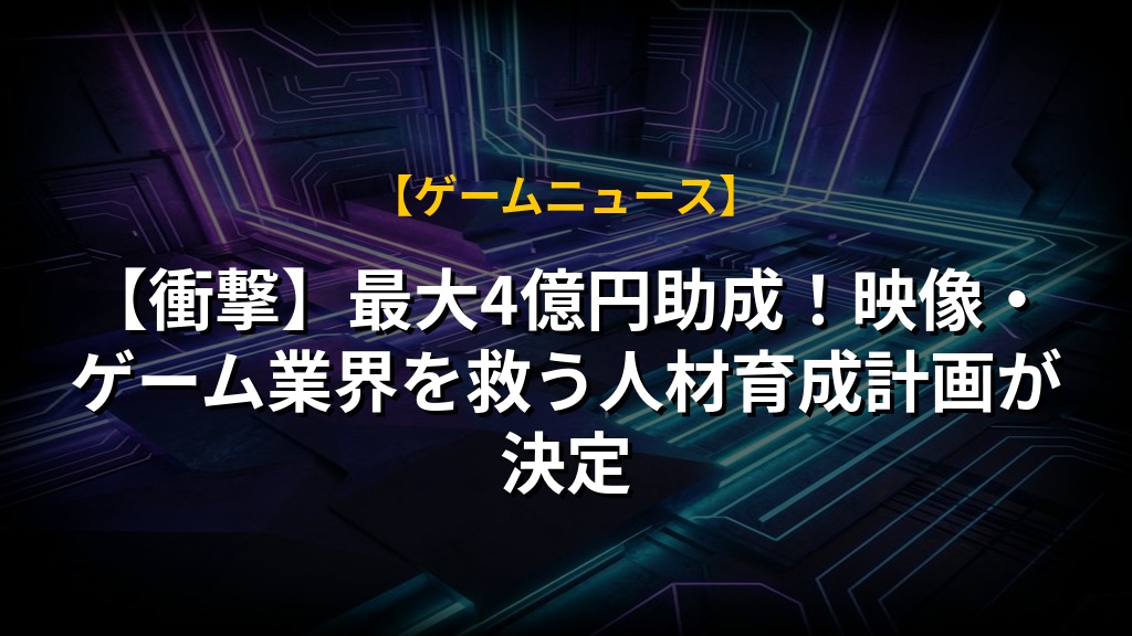 【衝撃】最大4億円助成!映像・ゲーム業界を救う人材育成計画が決定