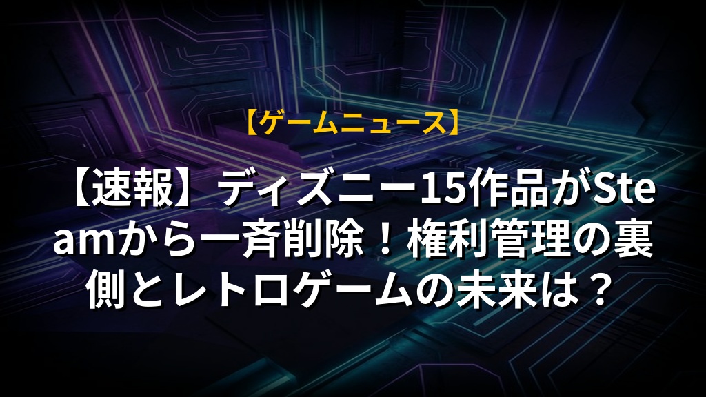 【速報】ディズニー15作品がSteamから一斉削除!権利管理の裏側とレトロゲームの未来は?の注目ポイントまとめ