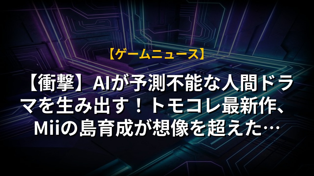 【衝撃】AIが予測不能な人間ドラマを生み出す!トモコレ最新作、Miiの島育成が想像を超えた…の注目ポイントまとめ