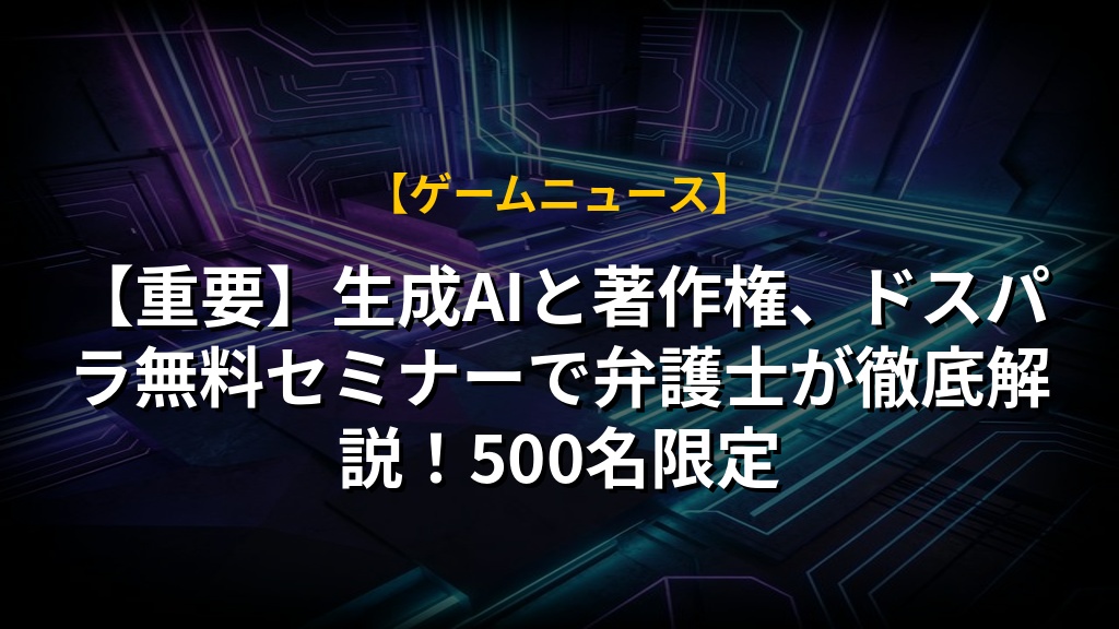 【重要】生成AIと著作権、ドスパラ無料セミナーで弁護士が徹底解説!500名限定
