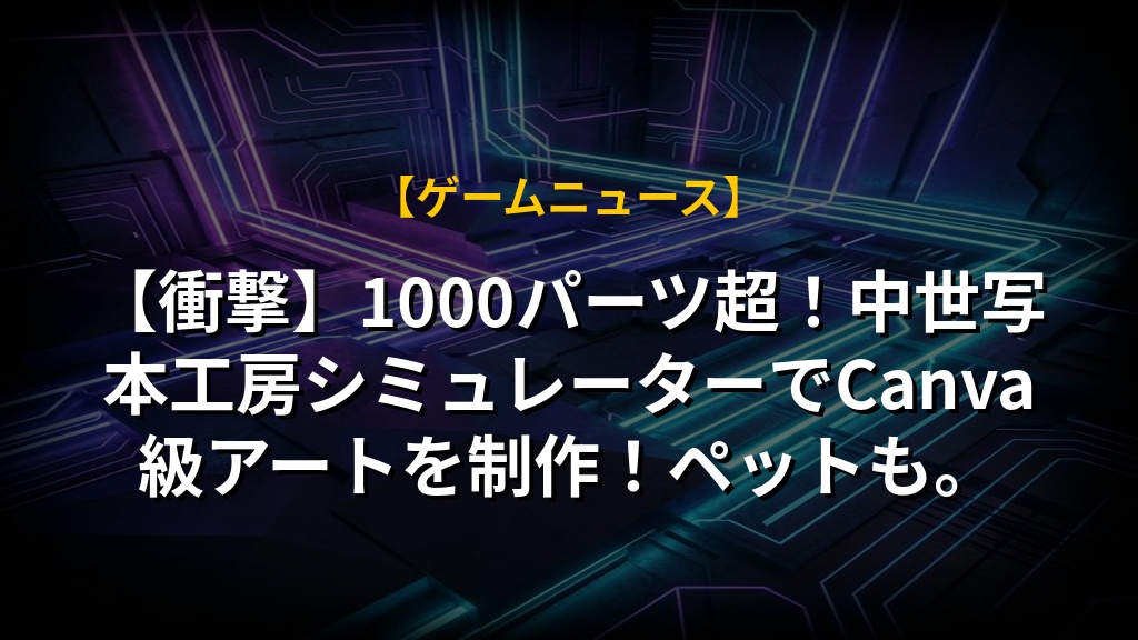 中世ヨーロッパの写本工房を舞台にしたシミュレーションゲームが登場しました。1000種類以上のパーツを自由に組み合わせて写本を制作できるのが魅力で、まるで「中世版Canva」のようです。ストーリーモードでは個性的な依頼人との出会いがあり、サンドボックスモードでは自由な創作を楽しめます。