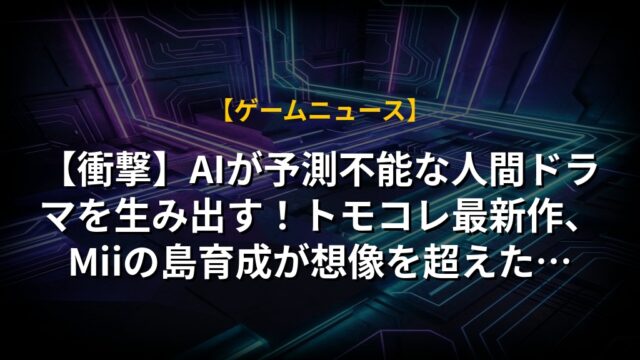 【衝撃】AIが予測不能な人間ドラマを生み出す!トモコレ最新作、Miiの島育成が想像を超えた…