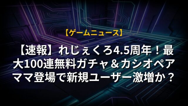 【速報】れじぇくろ4.5周年!最大100連無料ガチャ&カシオペアママ登場で新規ユーザー激増か?