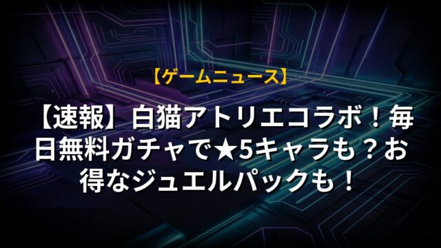 【速報】白猫アトリエコラボ!毎日無料ガチャで★5キャラも?お得なジュエルパックも!