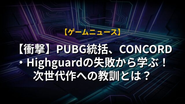 【衝撃】PUBG統括、CONCORD・Highguardの失敗から学ぶ!次世代作への教訓とは?