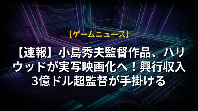 【速報】小島秀夫監督作品、ハリウッドが実写映画化へ!興行収入3億ドル超監督が手掛ける