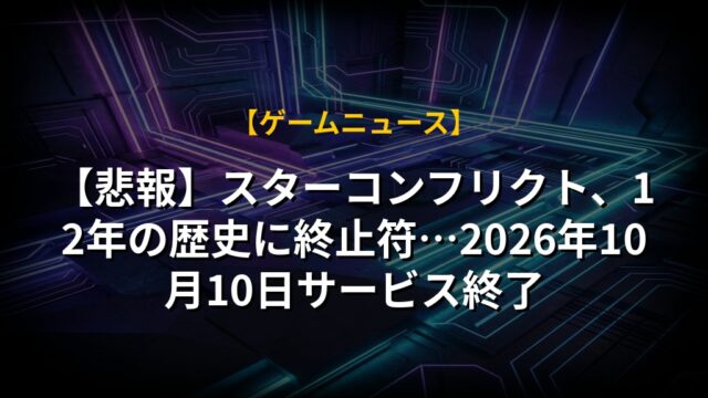【悲報】スターコンフリクト、12年の歴史に終止符…2026年10月10日サービス終了