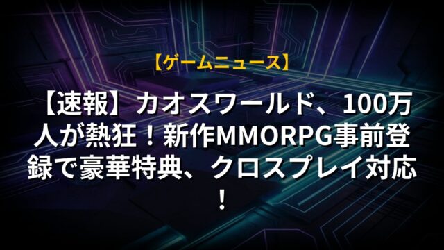 【速報】カオスワールド、100万人が熱狂!新作MMORPG事前登録で豪華特典、クロスプレイ対応!
