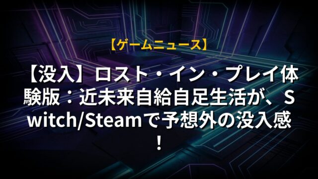 【没入】ロスト・イン・プレイ体験版:近未来自給自足生活が、Switch/Steamで予想外の没入感!