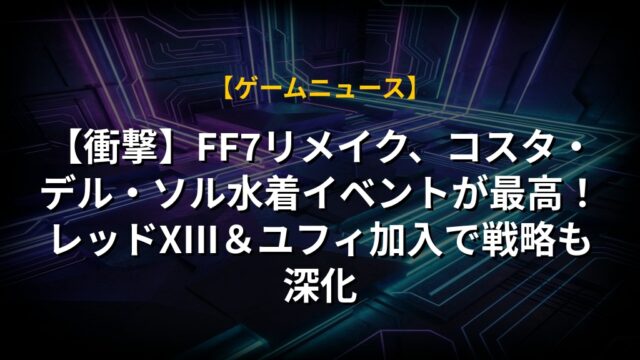 【衝撃】FF7リメイク、コスタ・デル・ソル水着イベントが最高!レッドXIII&ユフィ加入で戦略も深化