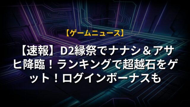 【速報】D2縁祭でナナシ&アサヒ降臨!ランキングで超越石をゲット!ログインボーナスも