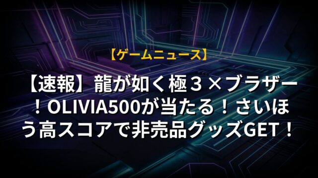 【速報】龍が如く極3×ブラザー!OLIVIA500が当たる!さいほう高スコアで非売品グッズGET!