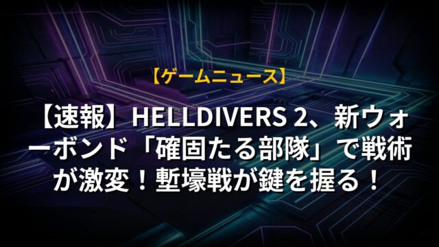 【速報】HELLDIVERS 2、新ウォーボンド「確固たる部隊」で戦術が激変!塹壕戦が鍵を握る!
