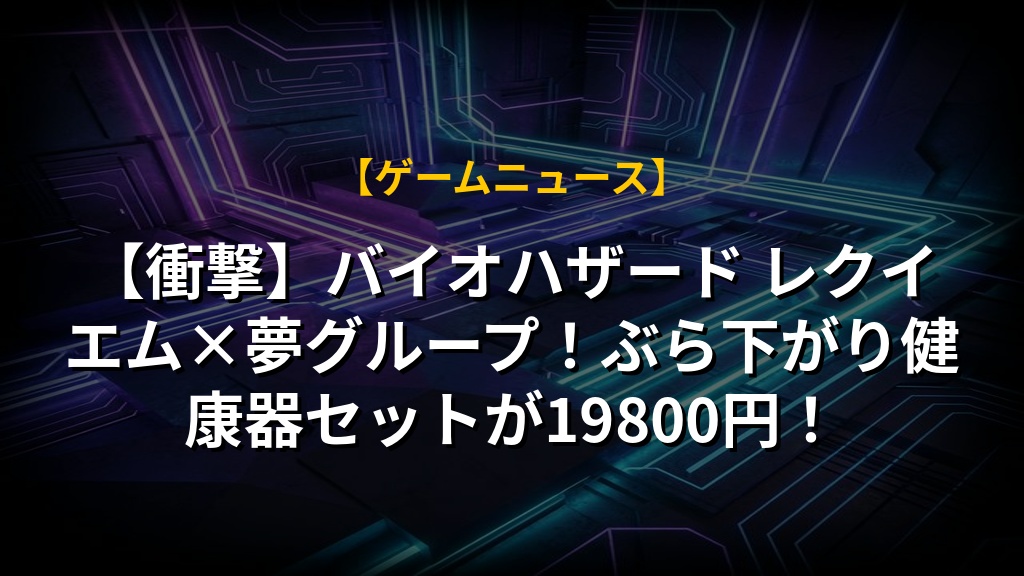 このセットは、『バイオハザード レクイエム』のプレイステーション5版またはNintendo Switch2版のゲームソフトと、夢グループの“ぶら下がり健康器”が同梱されたもの。価格は19800円(税込)で、ゲームで疲れた体をリフレッシュできるコンセプトとなっている。