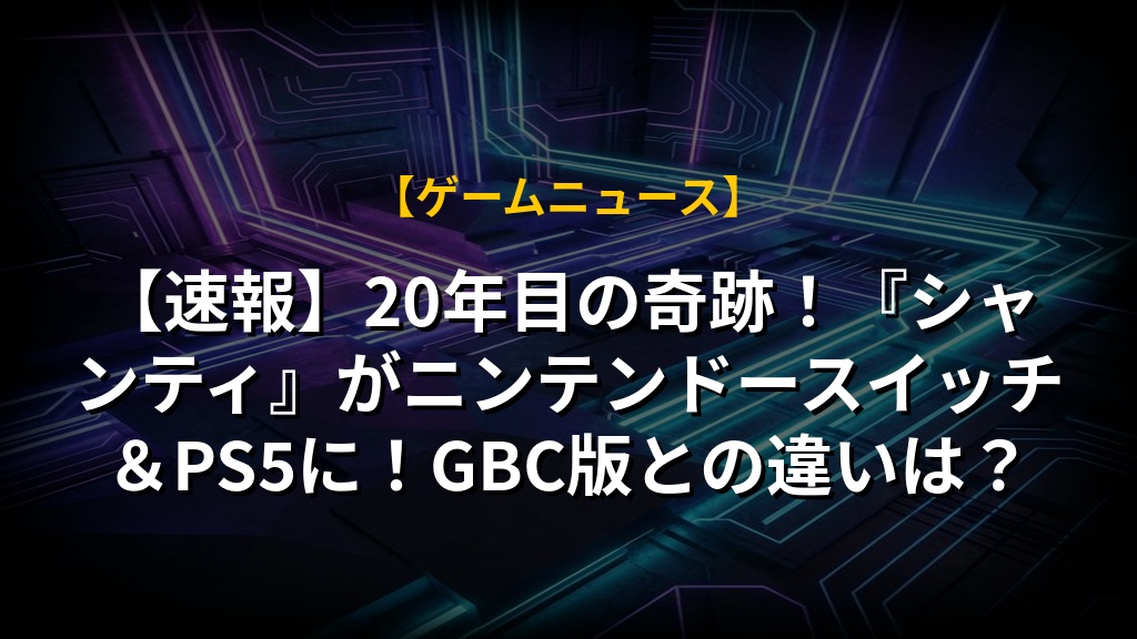 【速報】20年目の奇跡!『シャンティ』がニンテンドースイッチ&PS5に!GBC版との違いは?