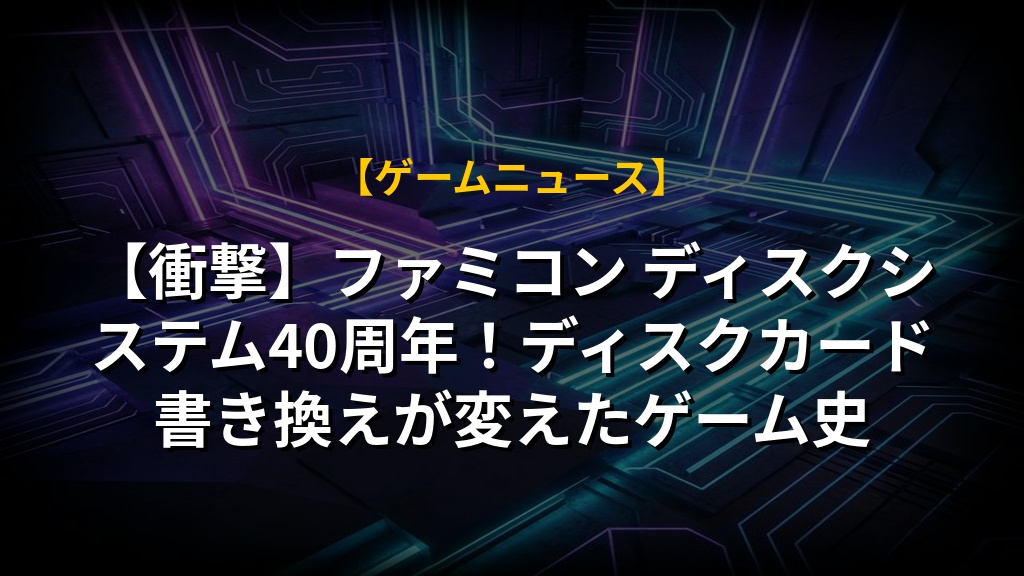 ファミリーコンピュータ ディスクシステムの40周年は、ゲームメディアの歴史における重要な節目である。
