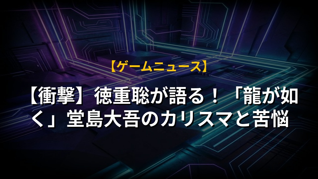 セガが公開した徳重聡のインタビュー映像は、『龍が如く』シリーズにおける重要なキャラクター、堂島大吾の魅力を再認識させる意図がある。