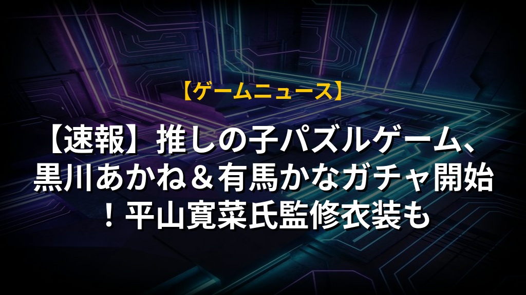 【速報】推しの子パズルゲーム、黒川あかね&有馬かなガチャ開始!平山寛菜氏監修衣装も