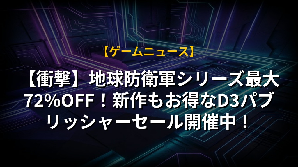 【衝撃】地球防衛軍シリーズ最大72%OFF!新作もお得なD3パブリッシャーセール開催中!