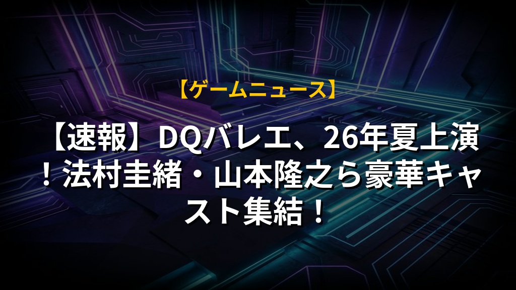 - DQの名曲とバレエ融合!2026年夏、兵庫県立芸術文化センターで『バレエ・ドラゴンクエスト』上演決定。