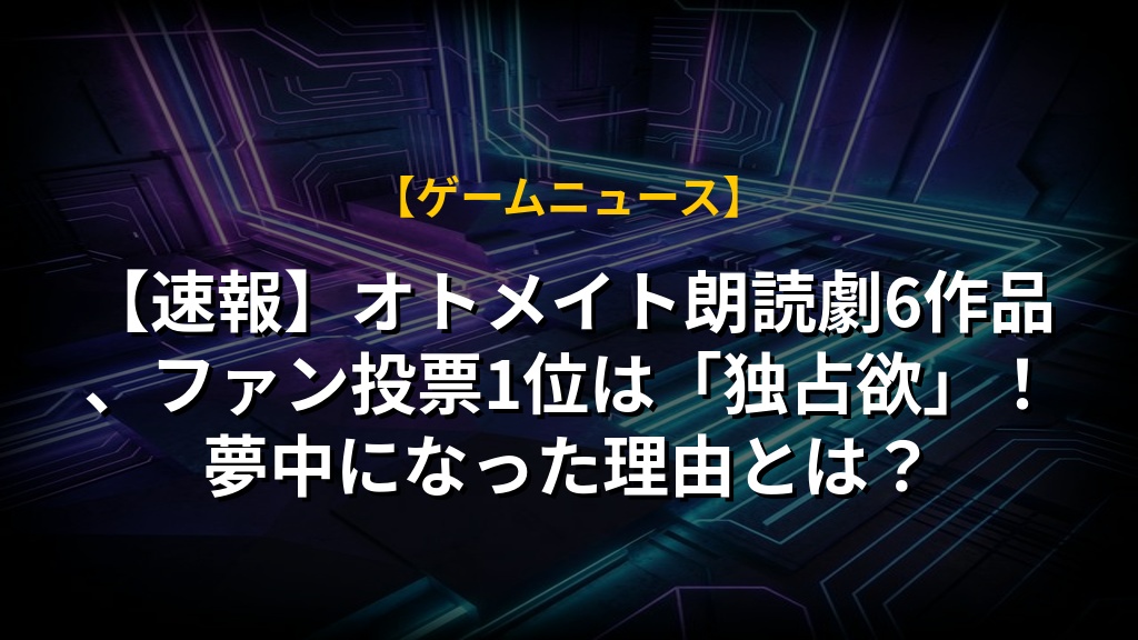 【速報】オトメイト朗読劇6作品、ファン投票1位は「独占欲」!夢中になった理由とは?