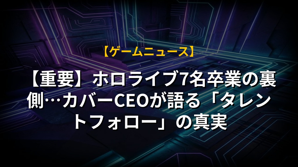 【重要】ホロライブ7名卒業の裏側…カバーCEOが語る「タレントフォロー」の真実