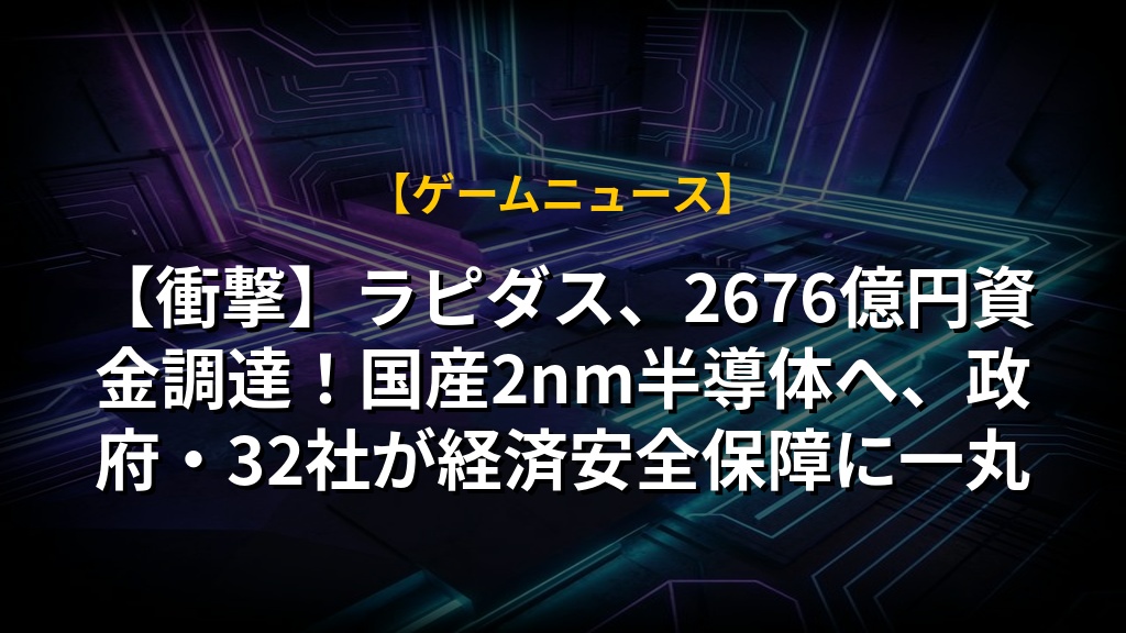 【衝撃】ラピダス、2676億円資金調達!国産2nm半導体へ、政府・32社が経済安全保障に一丸