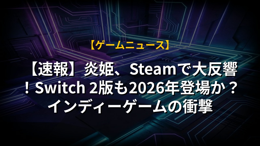 【速報】炎姫、Steamで大反響!Switch 2版も2026年登場か?インディーゲームの衝撃
