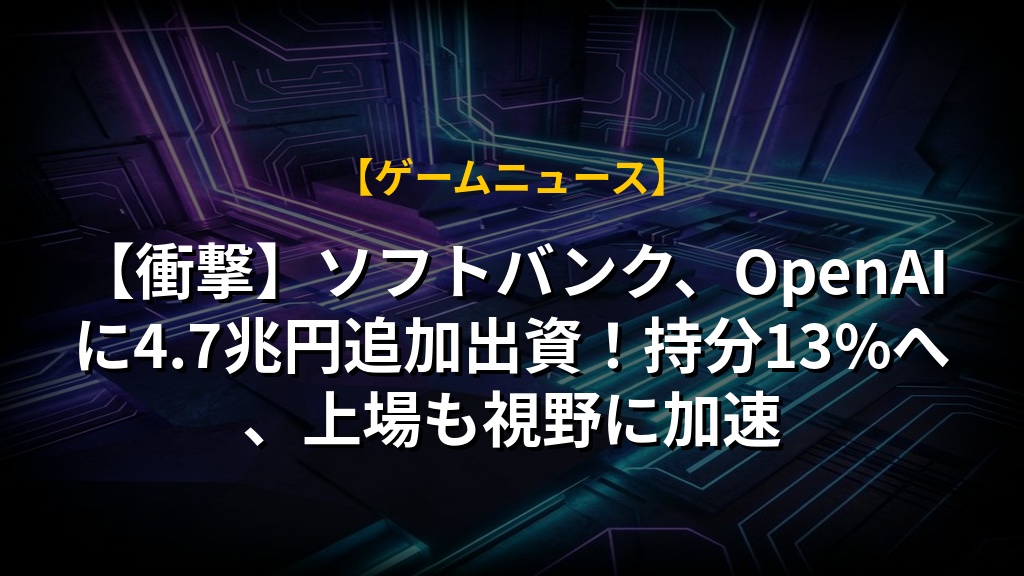 【衝撃】ソフトバンク、OpenAIに4.7兆円追加出資!持分13%へ、上場も視野に加速