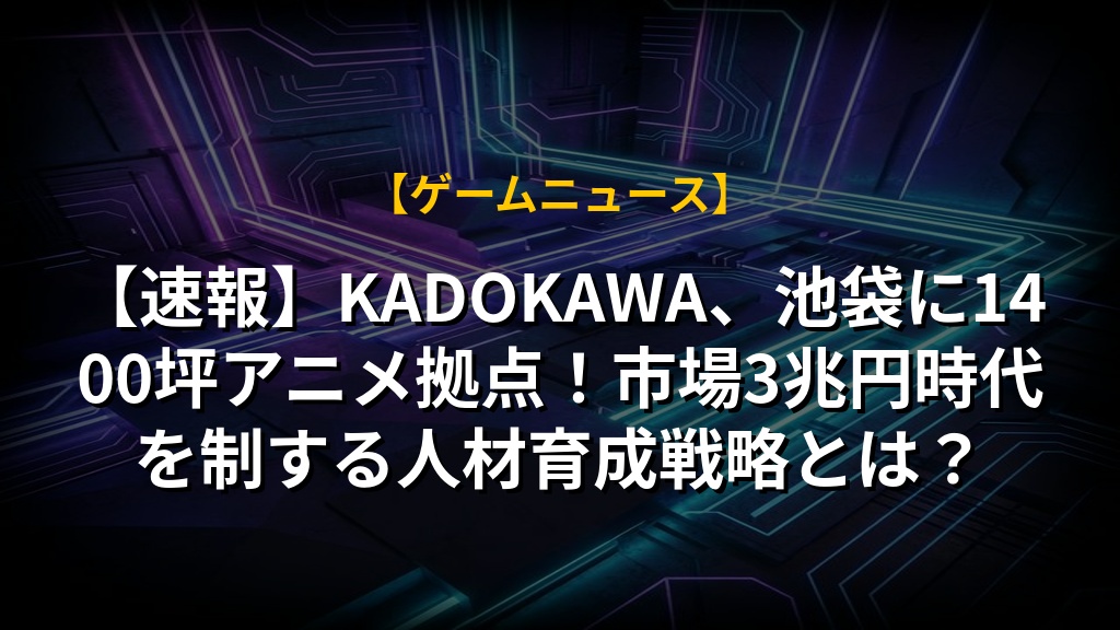 KADOKAWAによる「Studio One Base」開設は、拡大するアニメ市場における制作体制強化と、業界が直面する人材不足への対応策として極めて戦略的である。