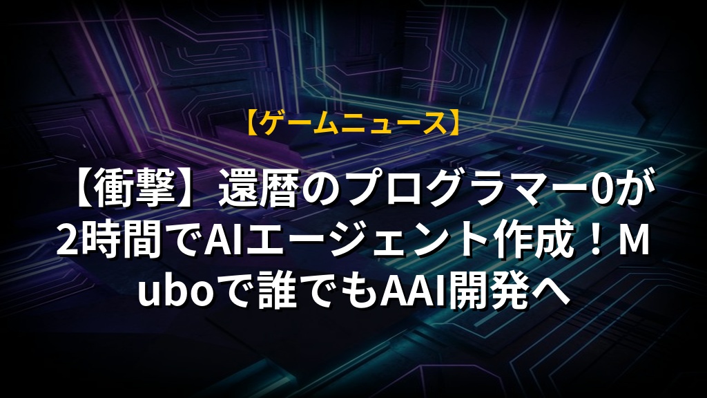 【衝撃】還暦のプログラマー0が2時間でAIエージェント作成!Muboで誰でもAAI開発へ