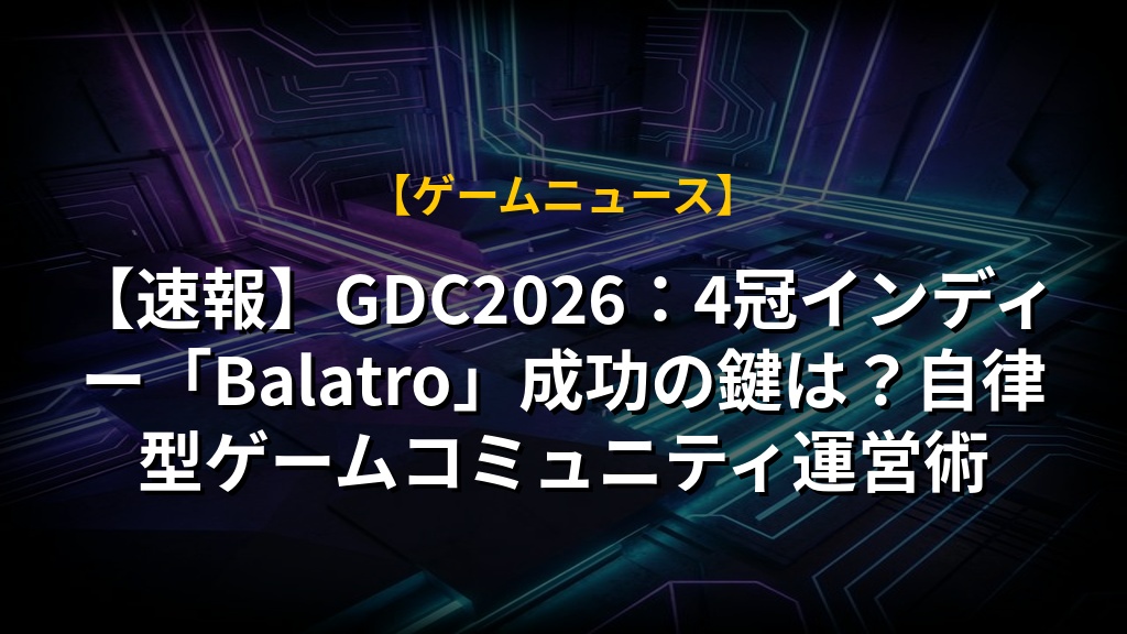 【速報】GDC2026:4冠インディー「Balatro」成功の鍵は?自律型ゲームコミュニティ運営術