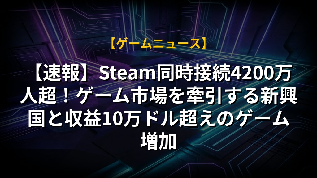 【速報】Steam同時接続4200万人超!ゲーム市場を牽引する新興国と収益10万ドル超えのゲーム増加
