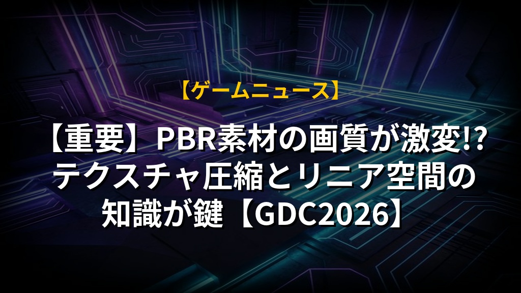 【重要】PBR素材の画質が激変!? テクスチャ圧縮とリニア空間の知識が鍵【GDC2026】