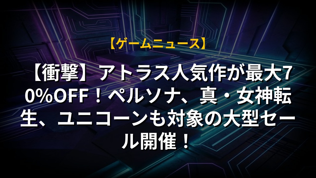 【衝撃】アトラス人気作が最大70%OFF!ペルソナ、真・女神転生、ユニコーンも対象の大型セール開催!