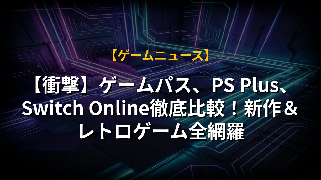 【衝撃】ゲームパス、PS Plus、Switch Online徹底比較!新作&レトロゲーム全網羅