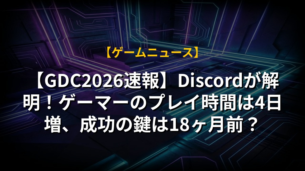 【GDC2026速報】Discordが解明!ゲーマーのプレイ時間は4日増、成功の鍵は18ヶ月前?