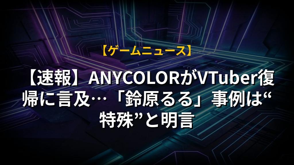 【速報】ANYCOLORがVTuber復帰に言及…「鈴原るる」事例は“特殊”と明言