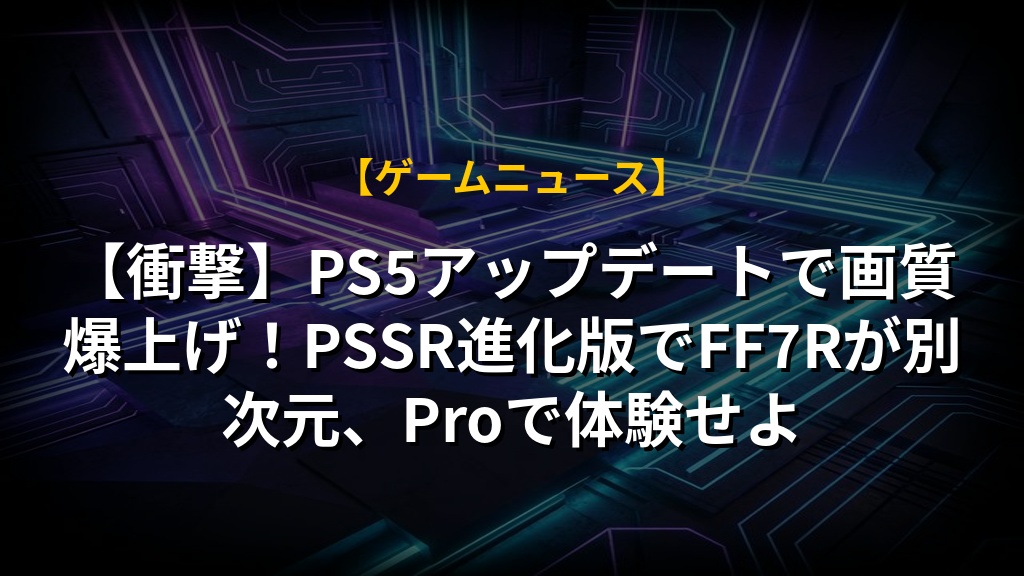 【衝撃】PS5アップデートで画質爆上げ!PSSR進化版でFF7Rが別次元、Proで体験せよ