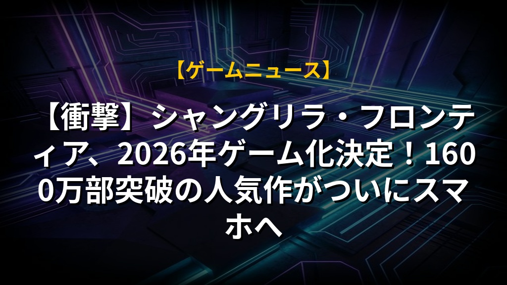 【衝撃】シャングリラ・フロンティア、2026年ゲーム化決定!1600万部突破の人気作がついにスマホへ
