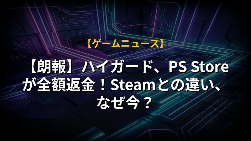【朗報】ハイガード、PS Storeが全額返金!Steamとの違い、なぜ今?