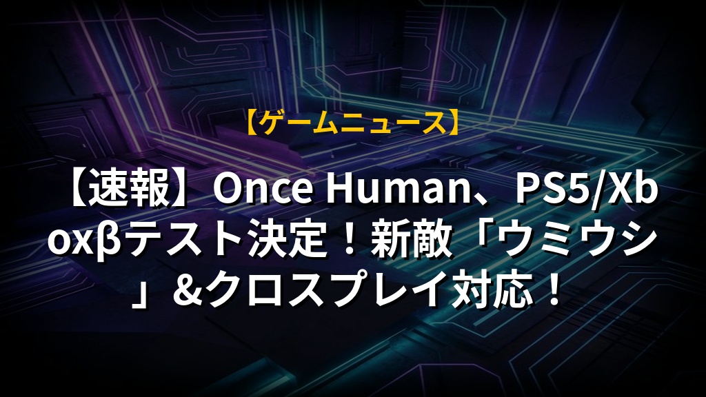 『Once Human』のコンソール版クローズドβテストが2026年3月26日に開始されることが発表されました。PS5/Xbox Series X|S向けで、PSとXbox間のクロスプレイにも対応!βテスト参加者には限定報酬も用意されています。