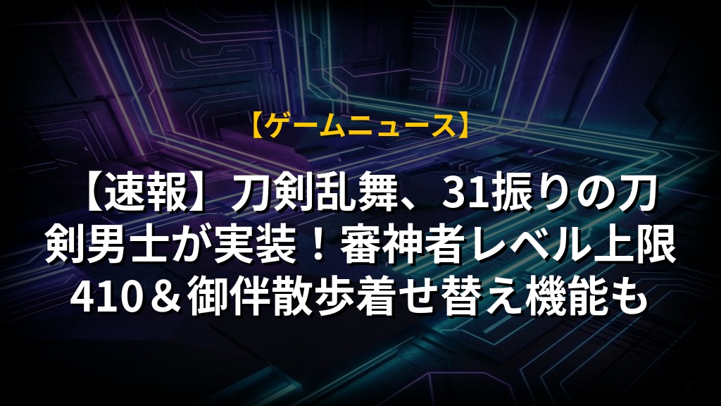 【速報】刀剣乱舞、31振りの刀剣男士が実装!審神者レベル上限410&御伴散歩着せ替え機能も
