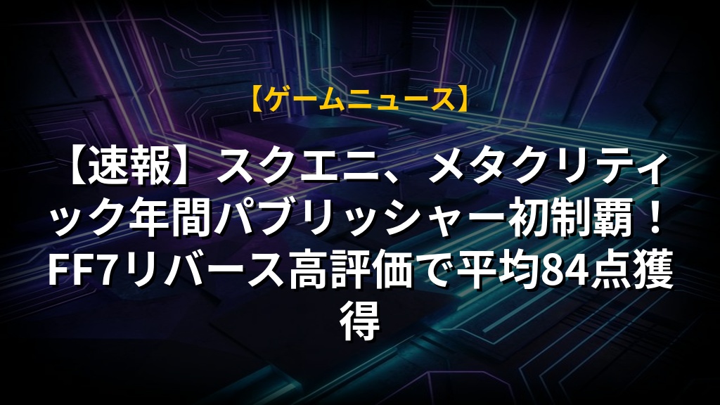 【速報】スクエニ、メタクリティック年間パブリッシャー初制覇!FF7リバース高評価で平均84点獲得