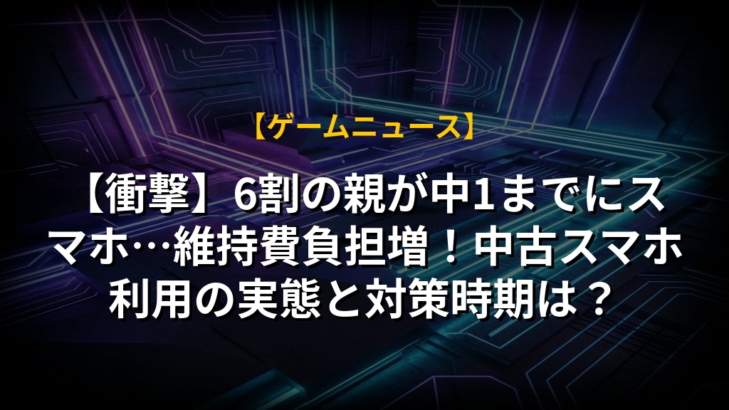 【衝撃】6割の親が中1までにスマホ…維持費負担増!中古スマホ利用の実態と対策時期は?