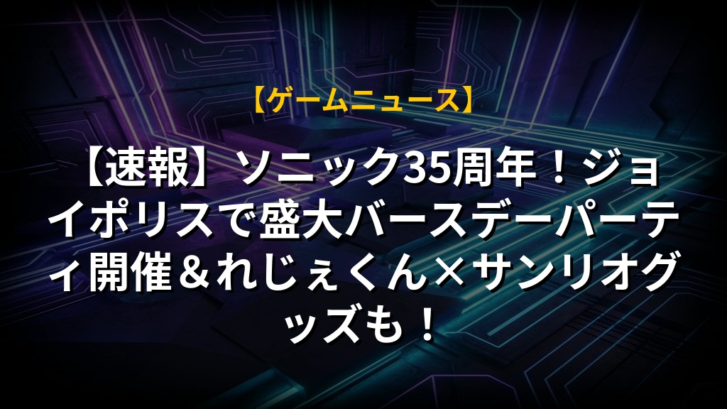 ソニック35周年記念イベントが盛りだくさんで、ファンにはたまらない内容となっていますね!ジョイポリスでのバースデーパーティやセガ本社でのファンミーティングは、ぜひ参加して思い出を作りたいところです。れじぇくんとのコラボ曲も公開され、若い世代へのアプローチもバッチリ。サンリオとのグッズ展開も可愛くて、ついつい集めたくなってしまいます。セガがソニックをエンタメブランドとして再構築していく姿勢に、今後の展開がますます楽しみです。