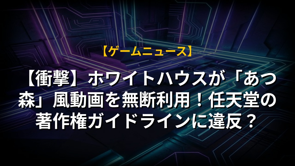 【衝撃】ホワイトハウスが「あつ森」風動画を無断利用!任天堂の著作権ガイドラインに違反?