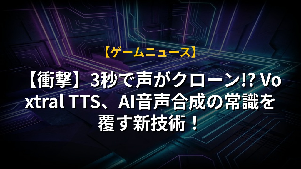 【衝撃】3秒で声がクローン!? Voxtral TTS、AI音声合成の常識を覆す新技術!